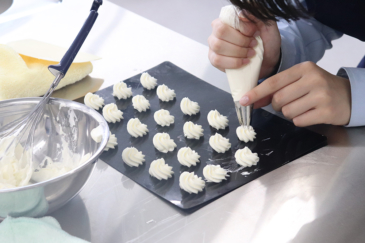 今回は、ケーキのデコレーション用の「生クリーム絞り」体験をしました。